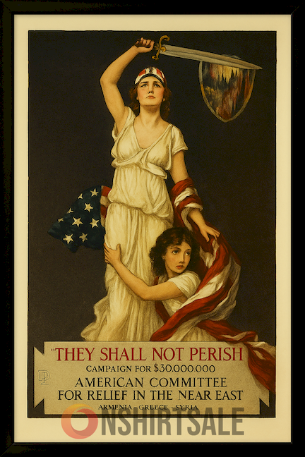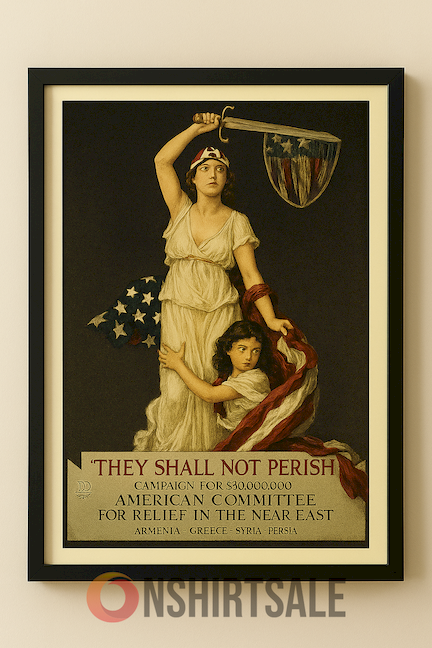 Honor history with the WWI Propaganda Poster “They Shall Not Perish,” an American Committee Relief Print. This vintage patriotic wall art captures the spirit of resilience and compassion, making it a powerful addition to home decor, offices, libraries, and history collections.